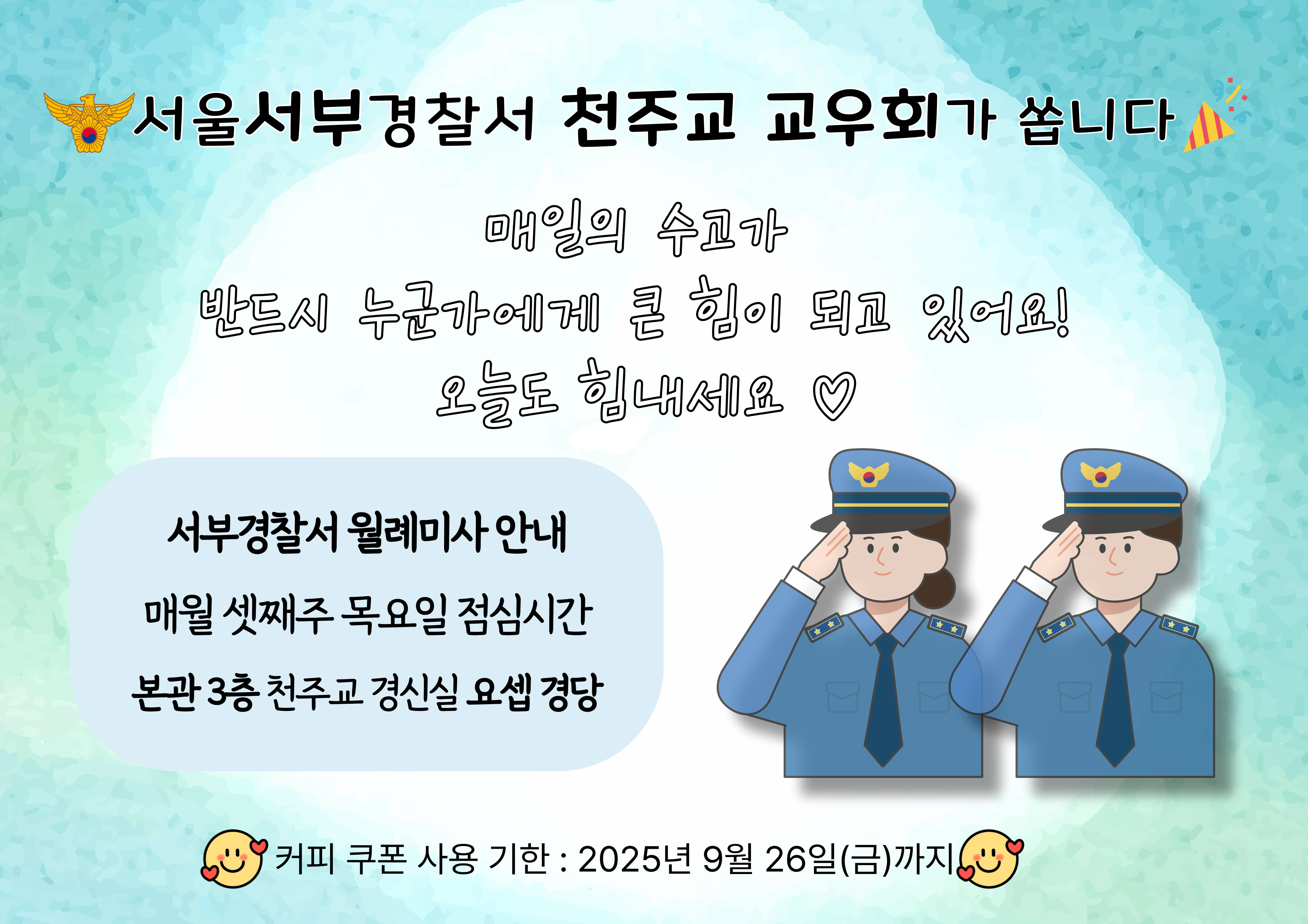 함께 하는 동료들을 위해 애써주신 서부경찰서 교우회와 경무계 직원분들 모두 고생많으셨습니다!