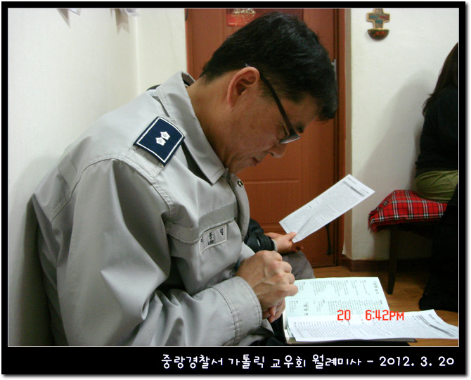 중랑경찰서 가톨릭 교우회 월례미사 일시 : 2012. 3. 20 (화) 장소 : 중랑경찰서 경신실