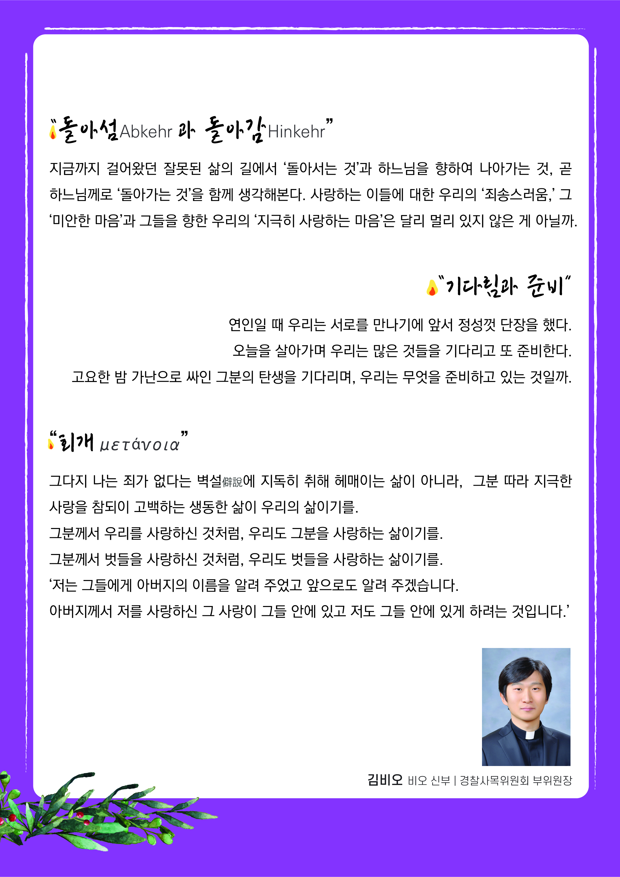 [복음묵상] 대림 제2주 : 김비오 비오 신부 (경찰사목위원회 부위원장)