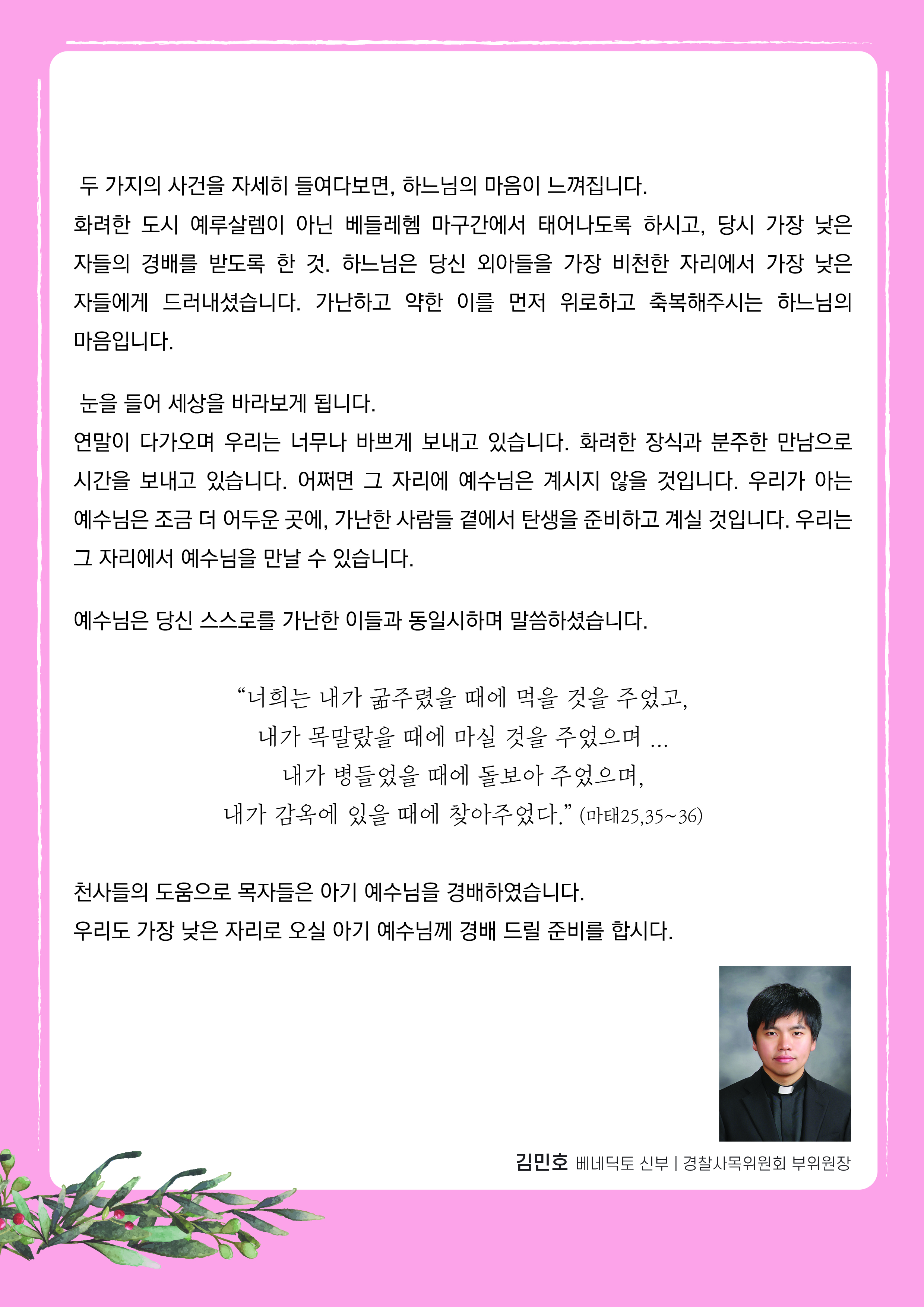[복음묵상] 대림 제3주 : 김민호 베네딕토 신부 (경찰사목위원회 부위원장)