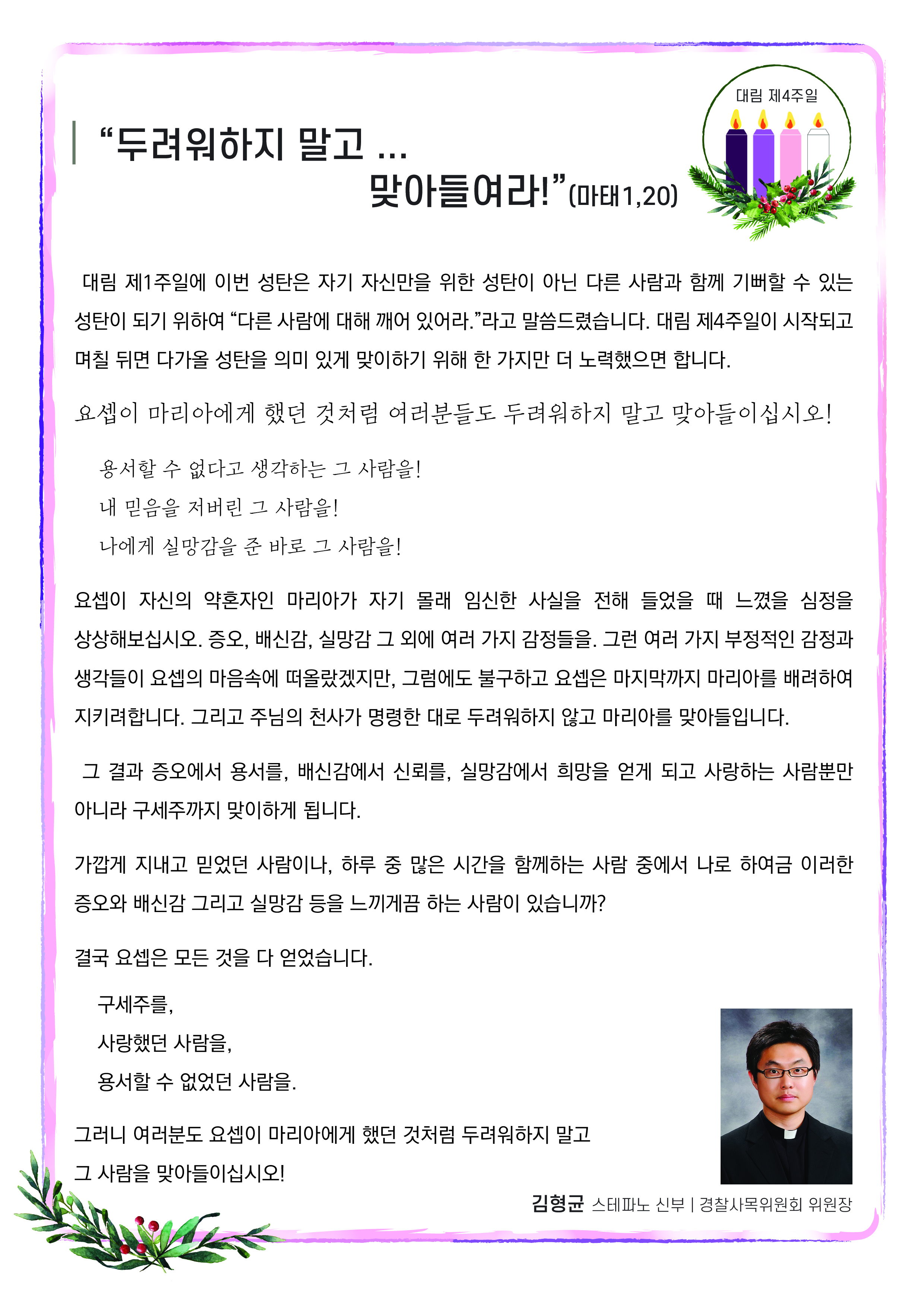 [복음묵상] 대림 제4주 : 김형균 스테파노 신부 (경찰사목위원회 위원장)