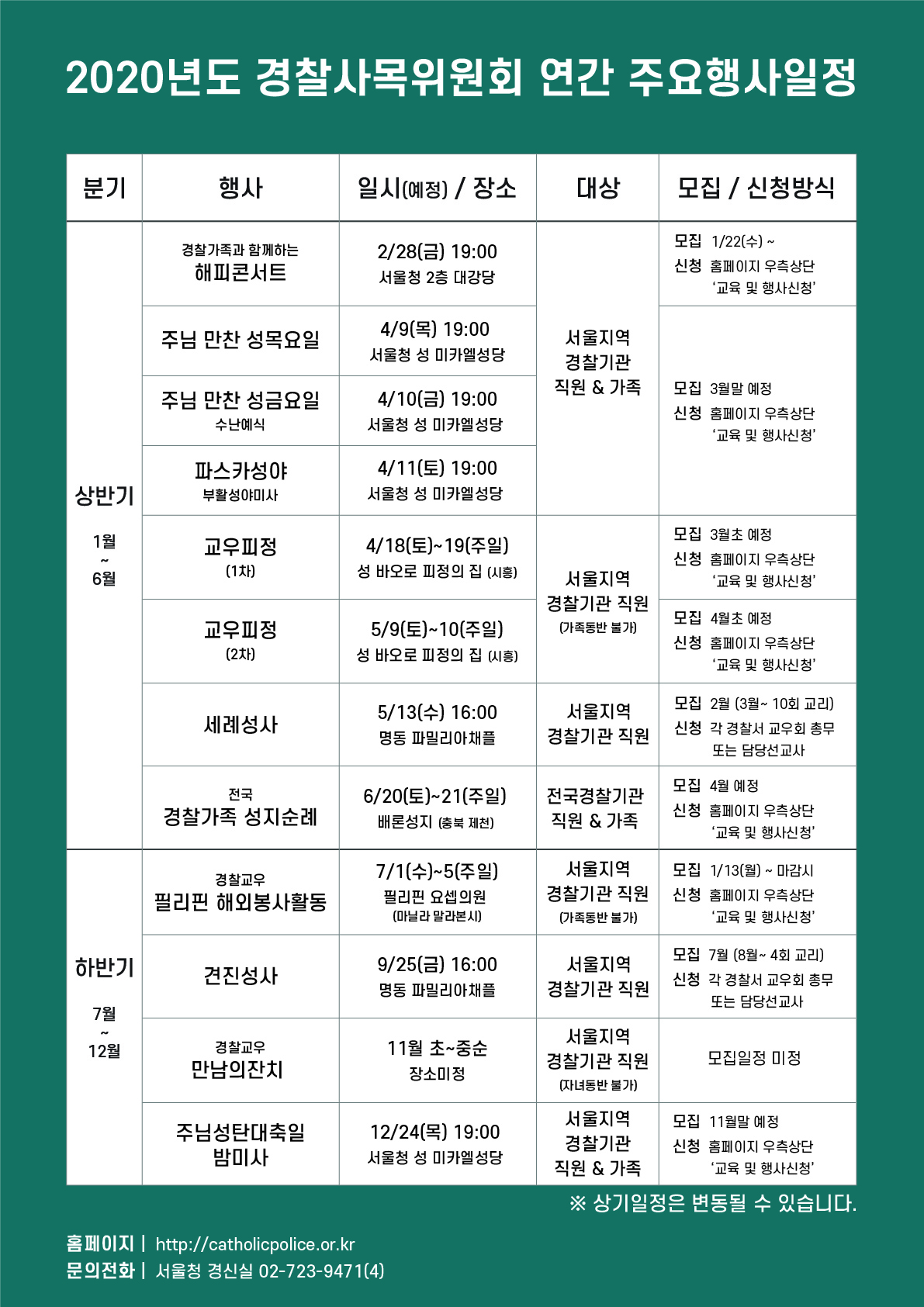 2020년도 경찰사목위원회 연간 주요행사일정