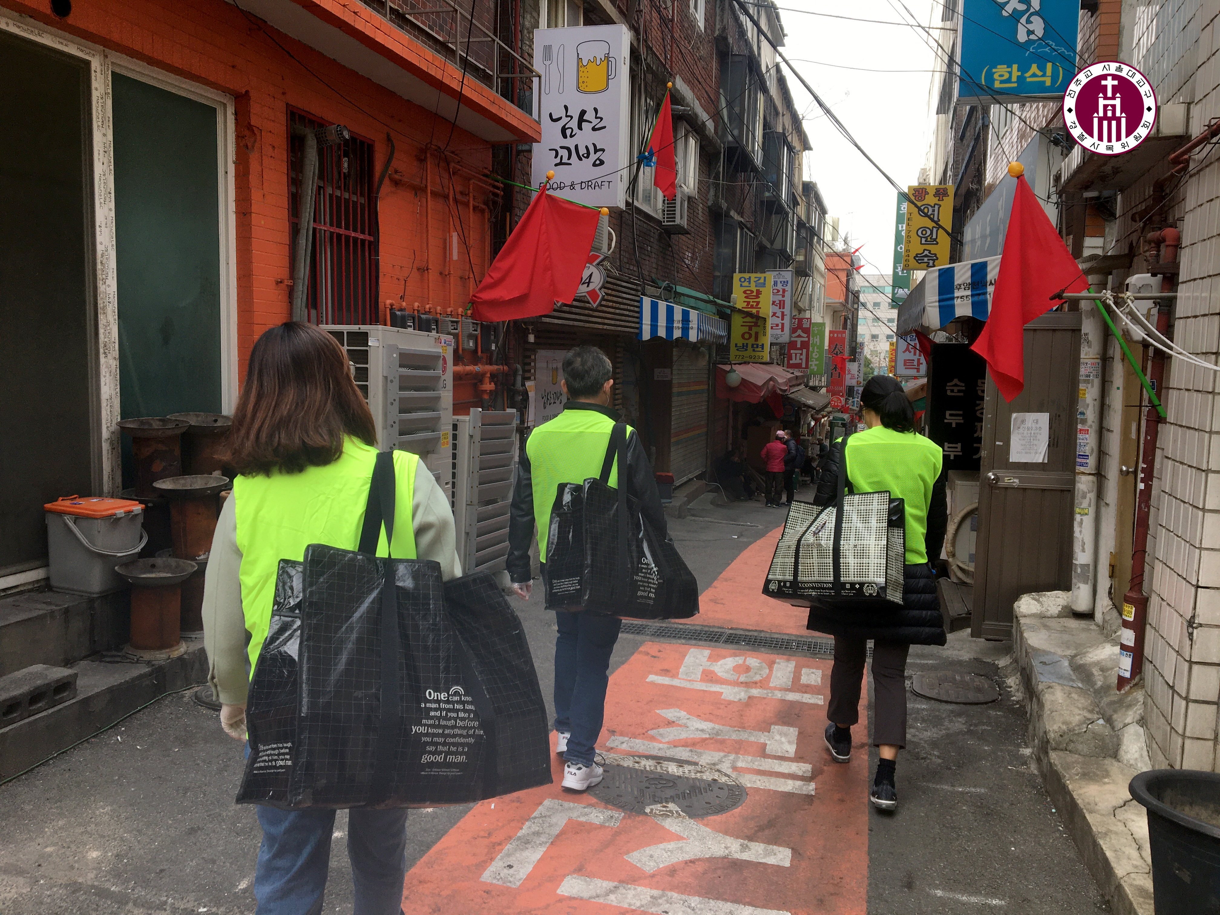소규모로 나누어 각 구역 쪽방촌 주민들에게 배달하였습니다.
