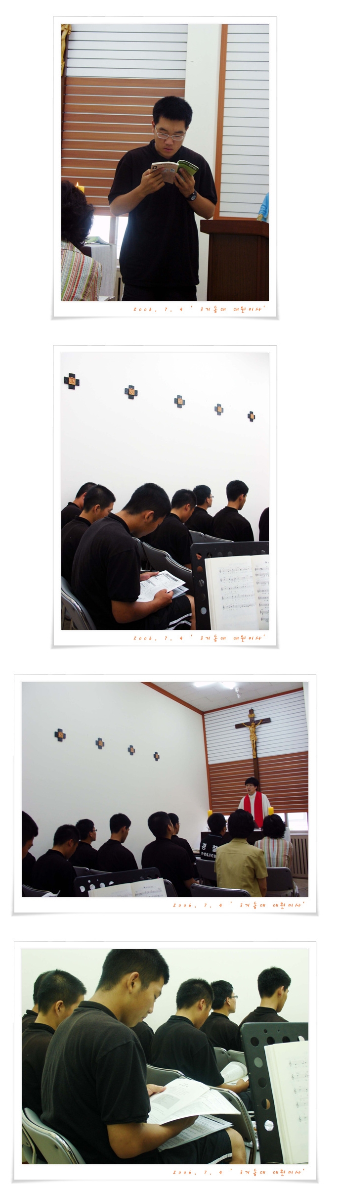 2006. 7. 4 - 3기동대 대원미사 많은 대원들이 특박을 나가게 되서 신병대원들과만 미사를 봉헌하였습니다.