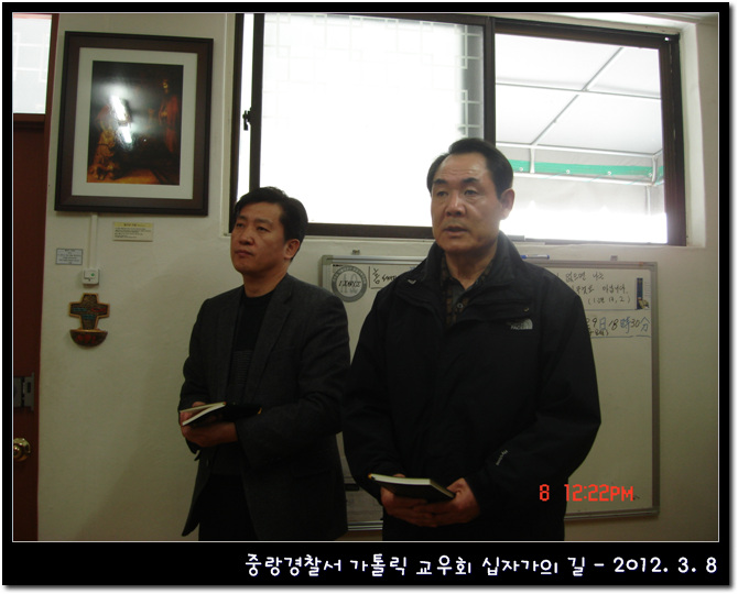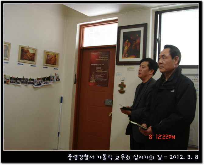 일 시 : 2012. 3. 8 장 소 : 중랑경찰서 경신실 중랑경찰서 교우분들이 사순시기를 지내면서 십자가의 길을 바치셨습니다.